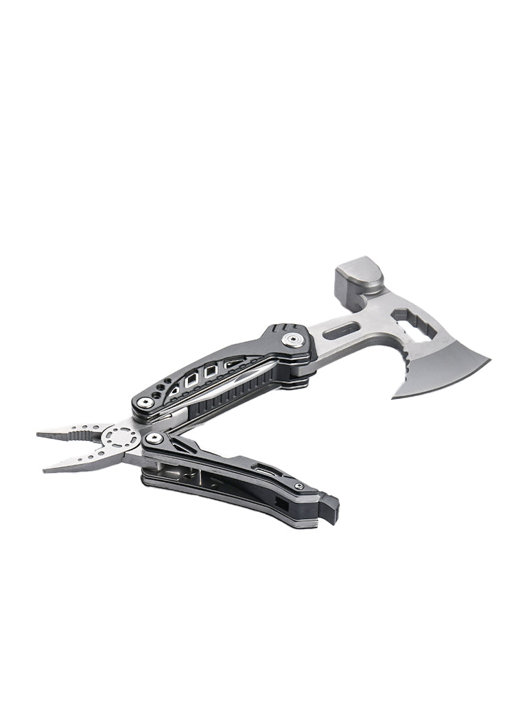Meet the Compact Multi-Tool Survival Axe, your all-in-one outdoor essential designed for the ultimate in versatility and preparedness. This compact powerhouse is perfect for camping, outdoor adventures, and wilderness survival, ensuring you're never without the tools you need.🪓 Axe with Safety Sheath: Our Survival Axe features a sharp, durable blade for cutting wood and a protective sheath for safe storage and transport, making it the perfect tool for campfire building and emergency situations.🔨 Hammer Function: The integrated hammer allows you to drive in tent stakes, break through obstacles, or perform repairs with ease.🦊 Pliers and Wire Cutter: The pliers and wire cutter are indispensable for a variety of tasks, from fixing gear to setting up camp.🔥 Fire Starter: The built-in fire starter ensures you can ignite a fire quickly, even in wet conditions, providing warmth and a cooking source in the wilderness.🪛 Screwdriver: With a built-in cross-head screwdriver, you can tighten or loosen screws without needing to carry a separate tool.⚔️ Knife and Serrated Blade: The axe comes with a knife and a serrated blade, perfect for cutting through various materials, from rope to wood.🔪 Mini Blade: For more delicate tasks, a mini blade is included, ideal for food preparation or detailed work.🍾 Bottle Opener: Never be without a bottle opener again. Our Survival Axe includes one, making it easy to enjoy a cold drink after a day of outdoor activities.🧰 Compact and Portable: Despite its many features, the Survival Axe is designed to be compact and easy to carry, fitting into any backpack or emergency kit.The Compact Multi-Tool Survival Axe is more than just an axe; it's a comprehensive survival tool that's always ready to handle whatever nature throws your way. Get yours today and take confidence in your preparedness for any outdoor adventure. Order now and be equipped for the unexpected with this indispensable multi-tool!